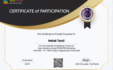 I am an aspiring Data Analyst with a strong foundation in analytical thinking, problem-solving, and data-driven decision making. Currently building skills in Excel, SQL, Python, data visualization, and dashboard creation, I aim to transform raw data into meaningful insights that support smart business decisions.
